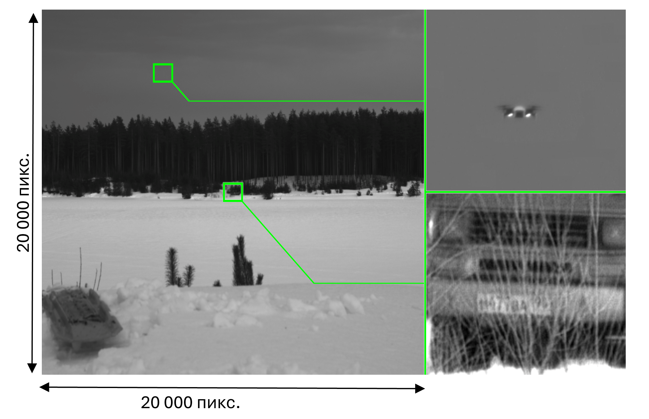 -широкое поле зрения (45 угл. град.) при высоком разрешении изображения (400 Мпикс)*;